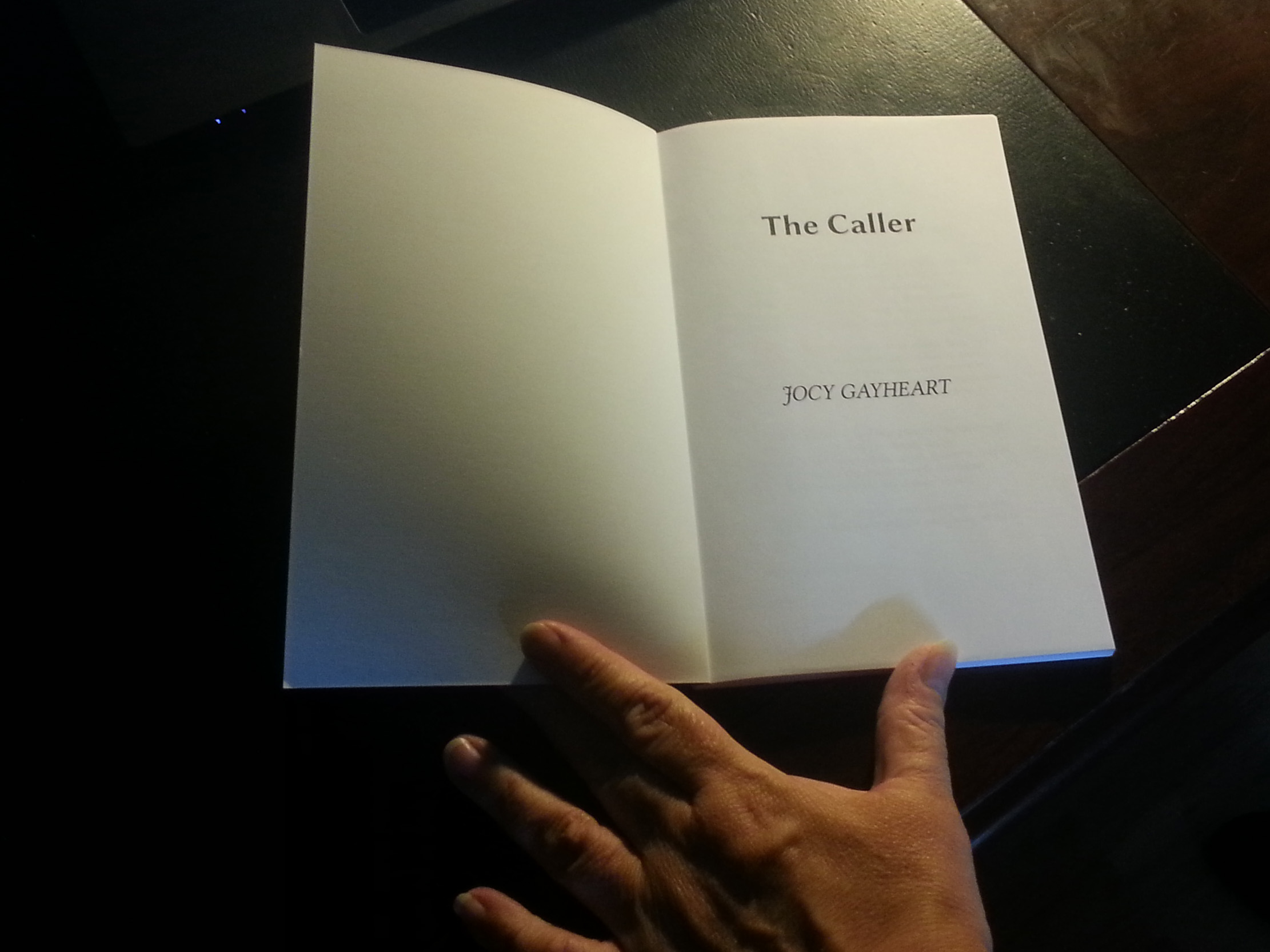 So anyway, I’ve done that, and ordered myself a proof copy of The Caller (which, as you should know, I wrote under a different pen name), just because it makes for a nice novel, I thought, and it finally arrived! I’m sooooo excited, even though it’s just a silly little book, it’s MY silly little book, and I can’t stop leafing through it. Check it!
